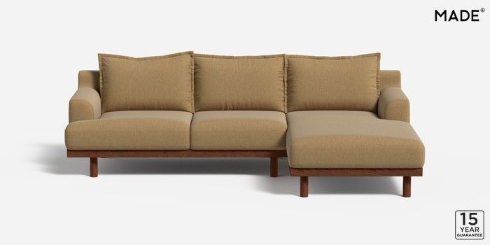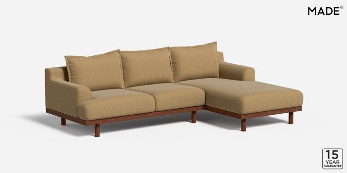 6.12.1 Turin by Made Medium Sofa Chaise - Right Hand Textured Slub Weave Caramel Natural Plinth - Walnut | Made Click here to use our website with more accessibility support, for example screen readers