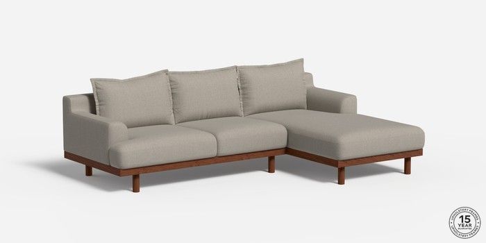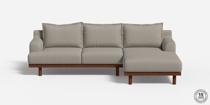 6.12.1 Turin by Made Medium Sofa Chaise - Right Hand Textured Slub Weave Pumice Grey Plinth - Walnut | Made Click here to use our website with more accessibility support, for example screen readers