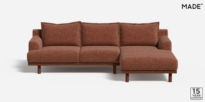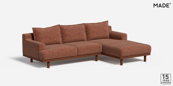 6.12.1 Turin by Made Medium Sofa Chaise - Right Hand Tonal Boucle Maroon Red and Light Caramel Plinth - Walnut | Made Click here to use our website with more accessibility support, for example screen readers