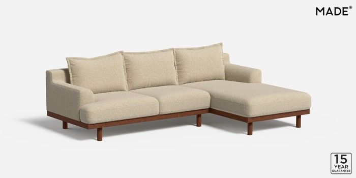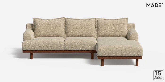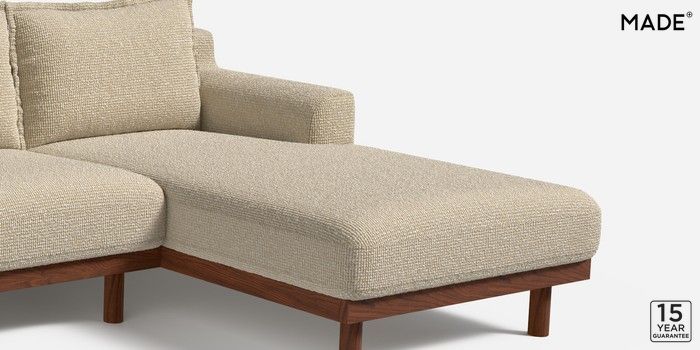 6.12.1 Turin by Made Medium Sofa Chaise - Right Hand Tonal Boucle Natural Oatmeal Plinth - Walnut | Made Click here to use our website with more accessibility support, for example screen readers