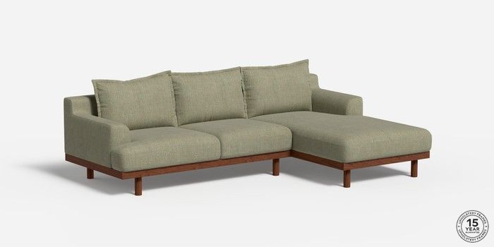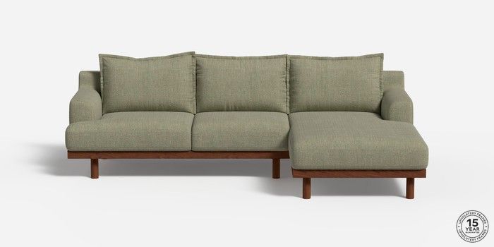 7.2.4 Turin by Made Medium Sofa Chaise - Right Hand Woven Fleck Sage Green Plinth - Walnut | Made Click here to use our website with more accessibility support, for example screen readers