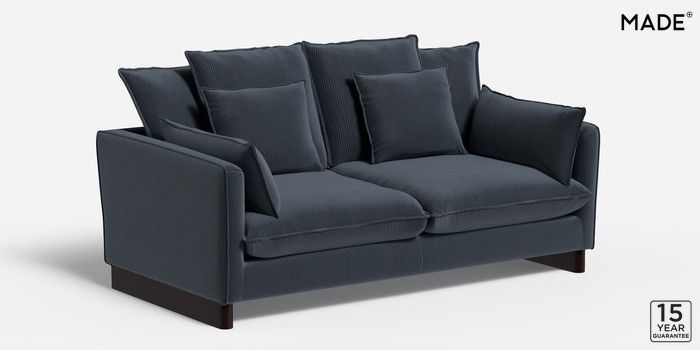 6.12.1 Whitby by Made 3 Seater Sofa Matt Corduroy Midnight Blue Sleigh - Dark Brown | Made Click here to use our website with more accessibility support, for example screen readers