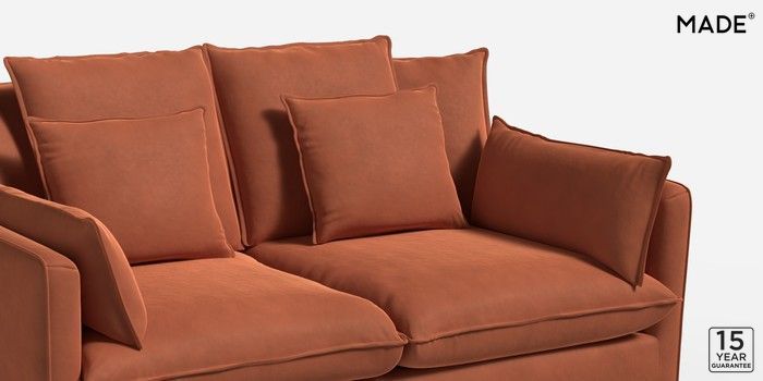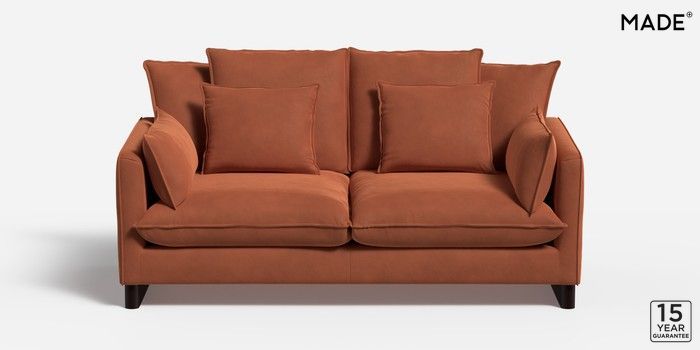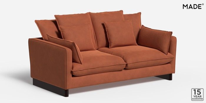 6.12.1 Whitby by Made 3 Seater Sofa Matt Velvet Easy Clean Burnt Orange Sleigh - Dark Brown | Made Click here to use our website with more accessibility support, for example screen readers