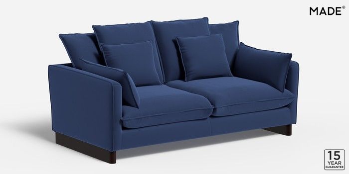 6.12.1 Whitby by Made 3 Seater Sofa Matt Velvet Easy Clean Navy Blue Sleigh - Dark Brown | Made Click here to use our website with more accessibility support, for example screen readers