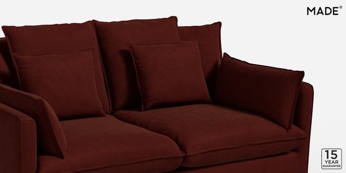 6.12.1 Whitby by Made 3 Seater Sofa Matt Velvet Easy Clean Rust Red Sleigh - Dark Brown | Made Click here to use our website with more accessibility support, for example screen readers