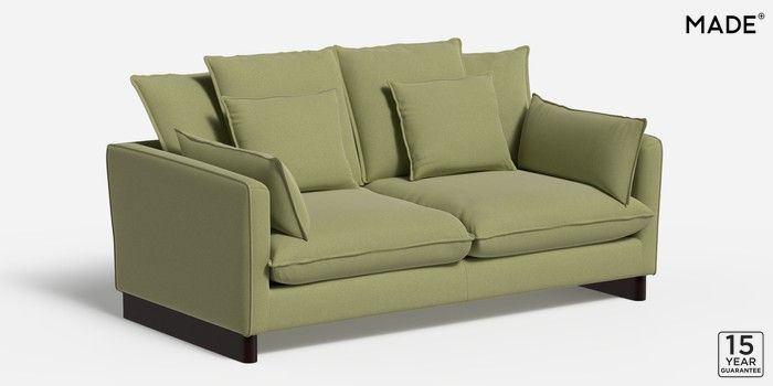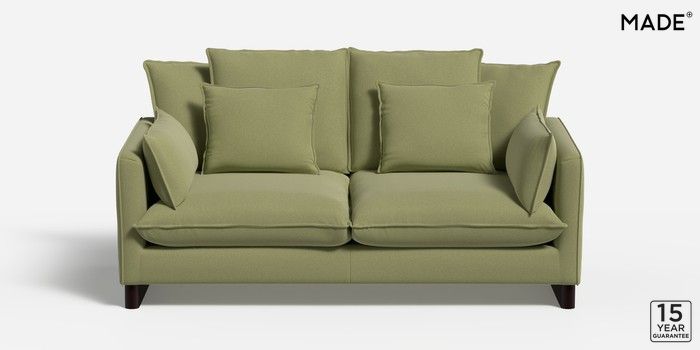 6.12.1 Whitby by Made 3 Seater Sofa Soft Chenille Easy Clean Green Tea Sleigh - Dark Brown | Made Click here to use our website with more accessibility support, for example screen readers