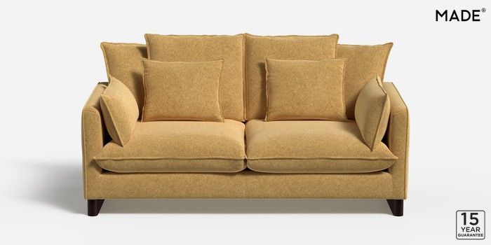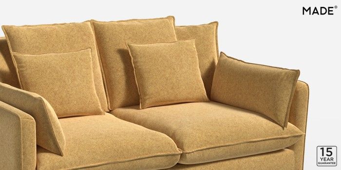 6.12.1 Whitby by Made 3 Seater Sofa Soft Chenille Easy Clean Yellow Ochre Sleigh - Dark Brown | Made Click here to use our website with more accessibility support, for example screen readers