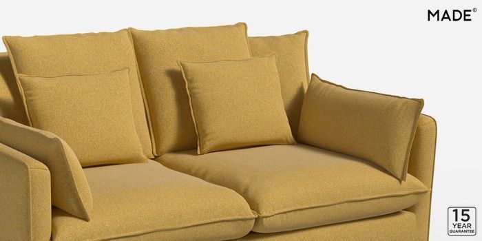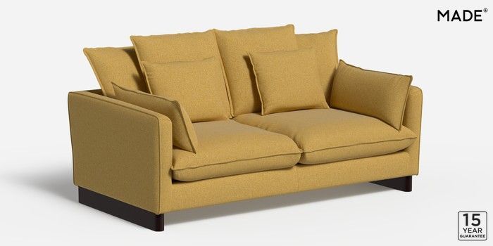 6.12.1 Whitby by Made 3 Seater Sofa Textured Woven Warm Ochre Sleigh - Dark Brown | Made Click here to use our website with more accessibility support, for example screen readers
