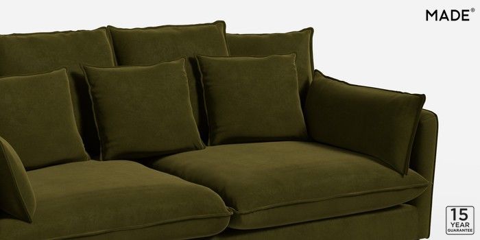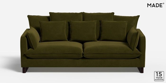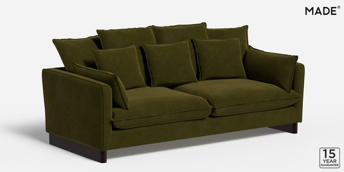 6.12.1 Whitby by Made 4 Seater Sofa Matt Velvet Easy Clean Deep Olive Green Sleigh - Dark Brown | Made Click here to use our website with more accessibility support, for example screen readers