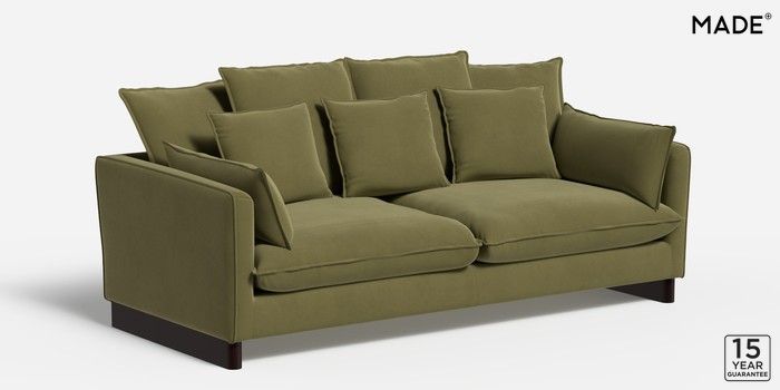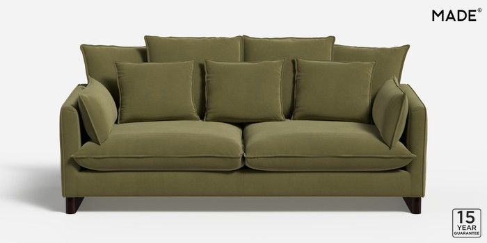 6.12.1 Whitby by Made 4 Seater Sofa Matt Velvet Easy Clean Fern Green Sleigh - Dark Brown | Made Click here to use our website with more accessibility support, for example screen readers