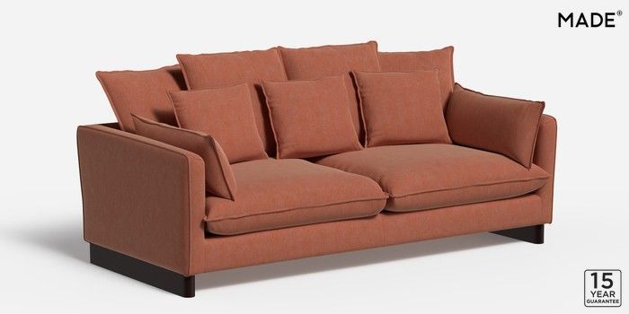 6.12.1 Whitby by Made 4 Seater Sofa Soft Chenille Easy Clean Paprika Orange Sleigh - Dark Brown | Made Click here to use our website with more accessibility support, for example screen readers