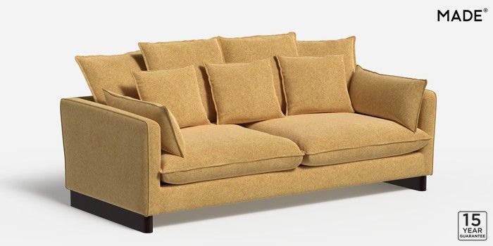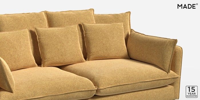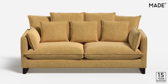 6.12.1 Whitby by Made 4 Seater Sofa Soft Chenille Easy Clean Yellow Ochre Sleigh - Dark Brown | Made Click here to use our website with more accessibility support, for example screen readers