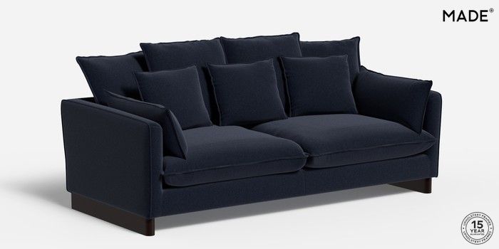 6.12.1 Whitby by Made 4 Seater Sofa Soft Touch Boucle Navy Blue Sleigh - Dark Brown | Made Click here to use our website with more accessibility support, for example screen readers