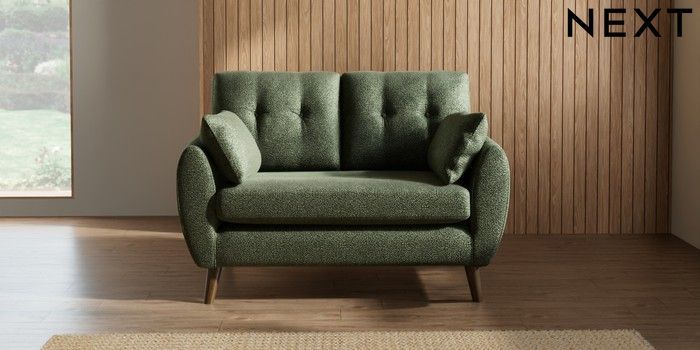 7.2.10 Wilson Buttoned Back 2 Seater Small Sofa Boucle Chenille Dark Moss Green Retro Tapered - Mid | Made Click here to use our website with more accessibility support, for example screen readers