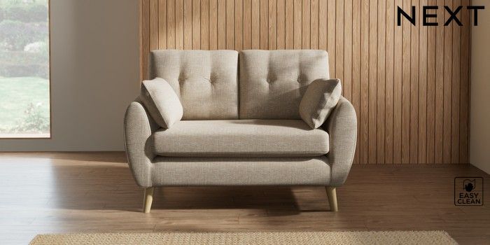 7.2.10 Wilson Buttoned Back 2 Seater Small Sofa Boucle Weave Easy Clean Dark Natural Retro Tapered - Light | Made Click here to use our website with more accessibility support, for example screen readers