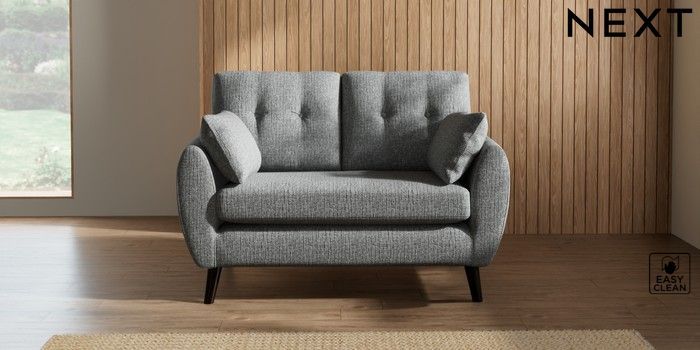 7.2.10 Wilson Buttoned Back 2 Seater Small Sofa Chunky Boucle Easy Clean Mid Grey Retro Tapered - Dark | Made Click here to use our website with more accessibility support, for example screen readers