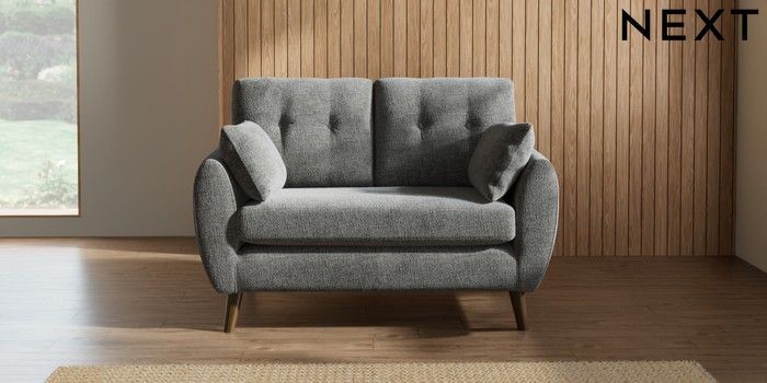7.2.10 Wilson Buttoned Back 2 Seater Small Sofa Chunky Chenille Dark Grey Retro Tapered - Mid | Made Click here to use our website with more accessibility support, for example screen readers