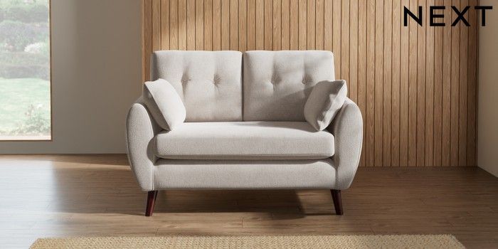 7.2.10 Wilson Buttoned Back 2 Seater Small Sofa Chunky Chenille Oyster Retro Tapered - Dark Brown | Made Click here to use our website with more accessibility support, for example screen readers