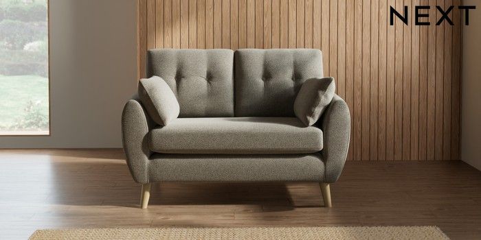 7.2.10 Wilson Buttoned Back 2 Seater Small Sofa Chunky Marl Light Olive Green Retro Tapered - Light | Made Click here to use our website with more accessibility support, for example screen readers