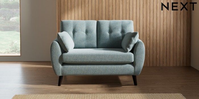 7.2.10 Wilson Buttoned Back 2 Seater Small Sofa Chunky Marl Mid Blue Retro Tapered - Dark | Made Click here to use our website with more accessibility support, for example screen readers