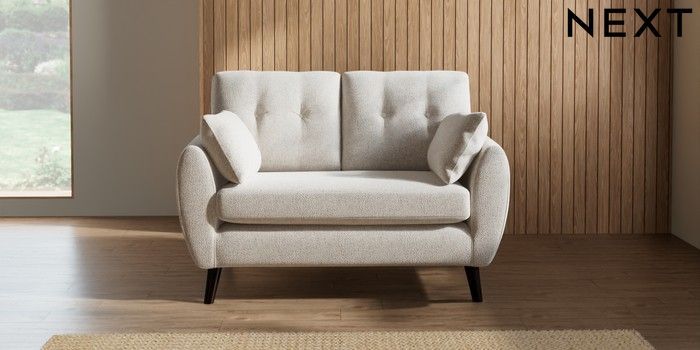 7.2.10 Wilson Buttoned Back 2 Seater Small Sofa Chunky Marl Oyster Retro Tapered - Dark | Made Click here to use our website with more accessibility support, for example screen readers