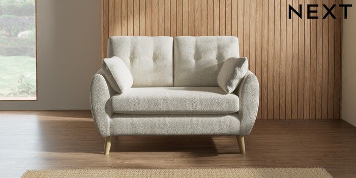 7.2.10 Wilson Buttoned Back 2 Seater Small Sofa Chunky Texture Oyster Retro Tapered - Light | Made Click here to use our website with more accessibility support, for example screen readers