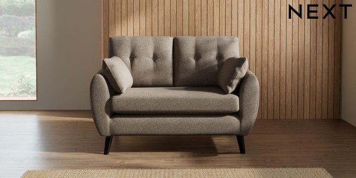 7.2.10 Wilson Buttoned Back 2 Seater Small Sofa Chunky Weave Dark Natural Retro Tapered - Dark | Made Click here to use our website with more accessibility support, for example screen readers