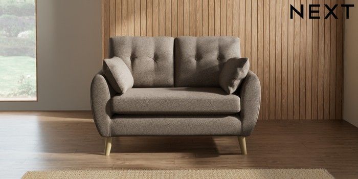 7.2.10 Wilson Buttoned Back 2 Seater Small Sofa Chunky Weave Dark Natural Retro Tapered - Light | Made Click here to use our website with more accessibility support, for example screen readers