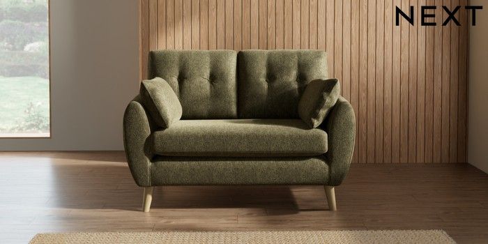 7.2.10 Wilson Buttoned Back 2 Seater Small Sofa Cotswold Chenille Dark Green Retro Tapered - Light | Made Click here to use our website with more accessibility support, for example screen readers