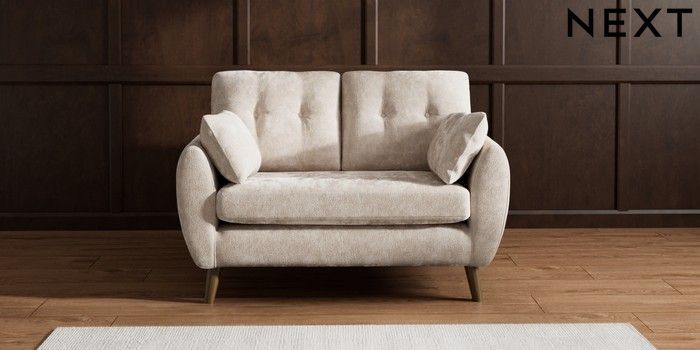 7.2.10 Wilson Buttoned Back 2 Seater Small Sofa Distressed Velour Mid Natural Retro Tapered - Mid | Made Click here to use our website with more accessibility support, for example screen readers