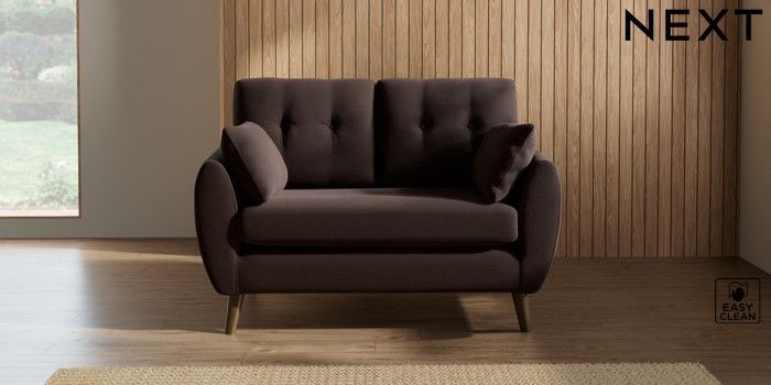 7.2.10 Wilson Buttoned Back 2 Seater Small Sofa Fine Chenille Easy Clean Chocolate Brown Retro Tapered - Mid | Made Click here to use our website with more accessibility support, for example screen readers