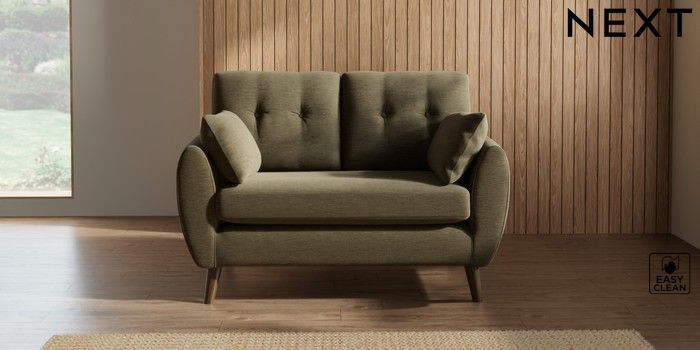 7.2.10 Wilson Buttoned Back 2 Seater Small Sofa Fine Chenille Easy Clean Dark Moss Green Retro Tapered - Mid | Made Click here to use our website with more accessibility support, for example screen readers
