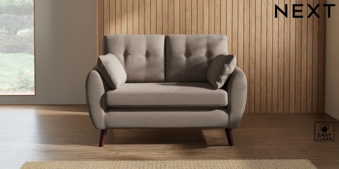 7.2.10 Wilson Buttoned Back 2 Seater Small Sofa Fine Chenille Easy Clean Mid Taupe Brown Retro Tapered - Dark Brown | Made Click here to use our website with more accessibility support, for example screen readers