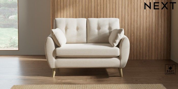 7.2.10 Wilson Buttoned Back 2 Seater Small Sofa Fine Chenille Easy Clean Oyster Retro Tapered - Light | Made Click here to use our website with more accessibility support, for example screen readers