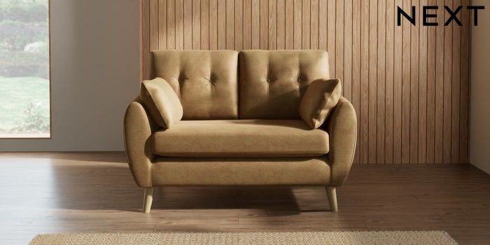 7.2.10 Wilson Buttoned Back 2 Seater Small Sofa Luxe Chenille Honey Yellow Retro Tapered - Light | Made Click here to use our website with more accessibility support, for example screen readers