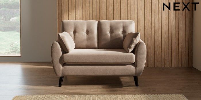 7.2.10 Wilson Buttoned Back 2 Seater Small Sofa Luxe Chenille Mid Natural Retro Tapered - Dark | Made Click here to use our website with more accessibility support, for example screen readers