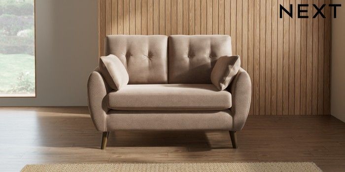 7.2.10 Wilson Buttoned Back 2 Seater Small Sofa Luxe Chenille Mid Natural Retro Tapered - Mid | Made Click here to use our website with more accessibility support, for example screen readers