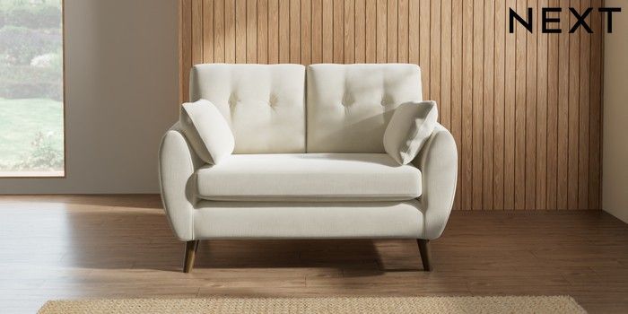 7.2.10 Wilson Buttoned Back 2 Seater Small Sofa Luxe Chenille Oyster Retro Tapered - Mid | Made Click here to use our website with more accessibility support, for example screen readers