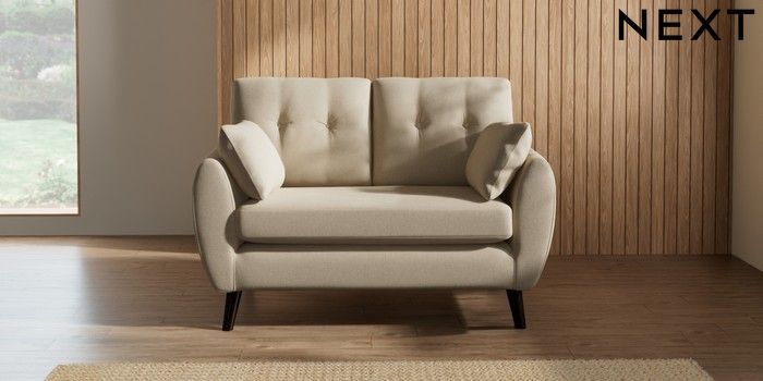 7.2.10 Wilson Buttoned Back 2 Seater Small Sofa Natural Mix Light Natural Retro Tapered - Dark | Made Click here to use our website with more accessibility support, for example screen readers