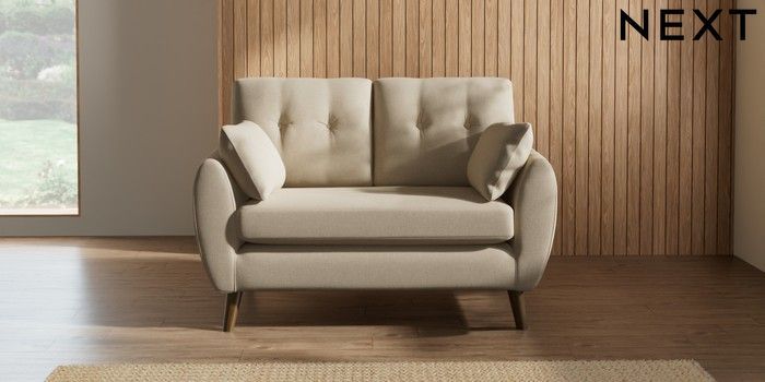 7.2.10 Wilson Buttoned Back 2 Seater Small Sofa Natural Mix Light Natural Retro Tapered - Mid | Made Click here to use our website with more accessibility support, for example screen readers