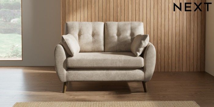 7.2.10 Wilson Buttoned Back 2 Seater Small Sofa Plush Chenille Light Natural Retro Tapered - Mid | Made Click here to use our website with more accessibility support, for example screen readers