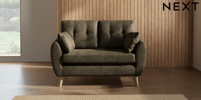 7.2.10 Wilson Buttoned Back 2 Seater Small Sofa Plush Chenille Moss Green Retro Tapered - Light | Made Click here to use our website with more accessibility support, for example screen readers