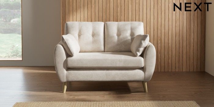 7.2.10 Wilson Buttoned Back 2 Seater Small Sofa Plush Chenille Oyster Retro Tapered - Light | Made Click here to use our website with more accessibility support, for example screen readers