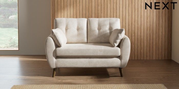 7.2.10 Wilson Buttoned Back 2 Seater Small Sofa Plush Chenille Oyster Retro Tapered - Mid | Made Click here to use our website with more accessibility support, for example screen readers