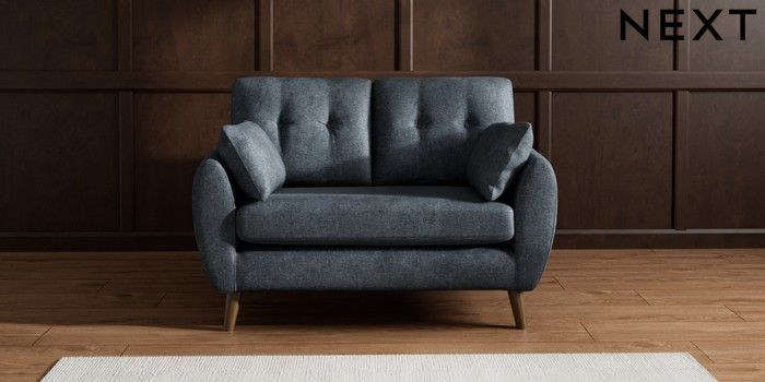 7.2.10 Wilson Buttoned Back 2 Seater Small Sofa Plush Chenille Slate Blue Retro Tapered - Mid | Made Click here to use our website with more accessibility support, for example screen readers