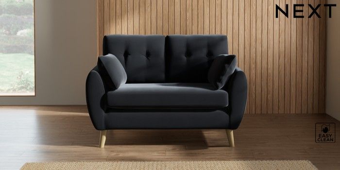 7.2.10 Wilson Buttoned Back 2 Seater Small Sofa Plush Velvet Easy Clean Charcoal Grey Retro Tapered - Light | Made Click here to use our website with more accessibility support, for example screen readers
