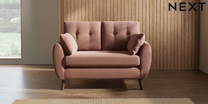 7.2.10 Wilson Buttoned Back 2 Seater Small Sofa Relaxed Linen Look Light Rust Brown Retro Tapered - Mid | Made Click here to use our website with more accessibility support, for example screen readers