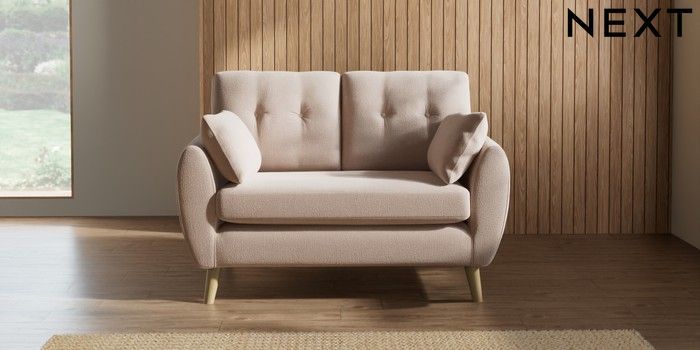 7.2.10 Wilson Buttoned Back 2 Seater Small Sofa Relaxed Linen Look Mid Natural Retro Tapered - Light | Made Click here to use our website with more accessibility support, for example screen readers