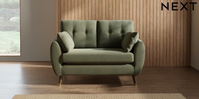 7.2.10 Wilson Buttoned Back 2 Seater Small Sofa Ripple Chenille Mid Moss Green Low Retro Tapered Metal Cap - Mid | Made Click here to use our website with more accessibility support, for example screen readers