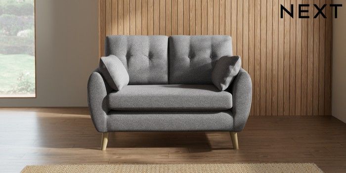 7.2.10 Wilson Buttoned Back 2 Seater Small Sofa Studio Chenille Mid Grey Retro Tapered - Light | Made Click here to use our website with more accessibility support, for example screen readers